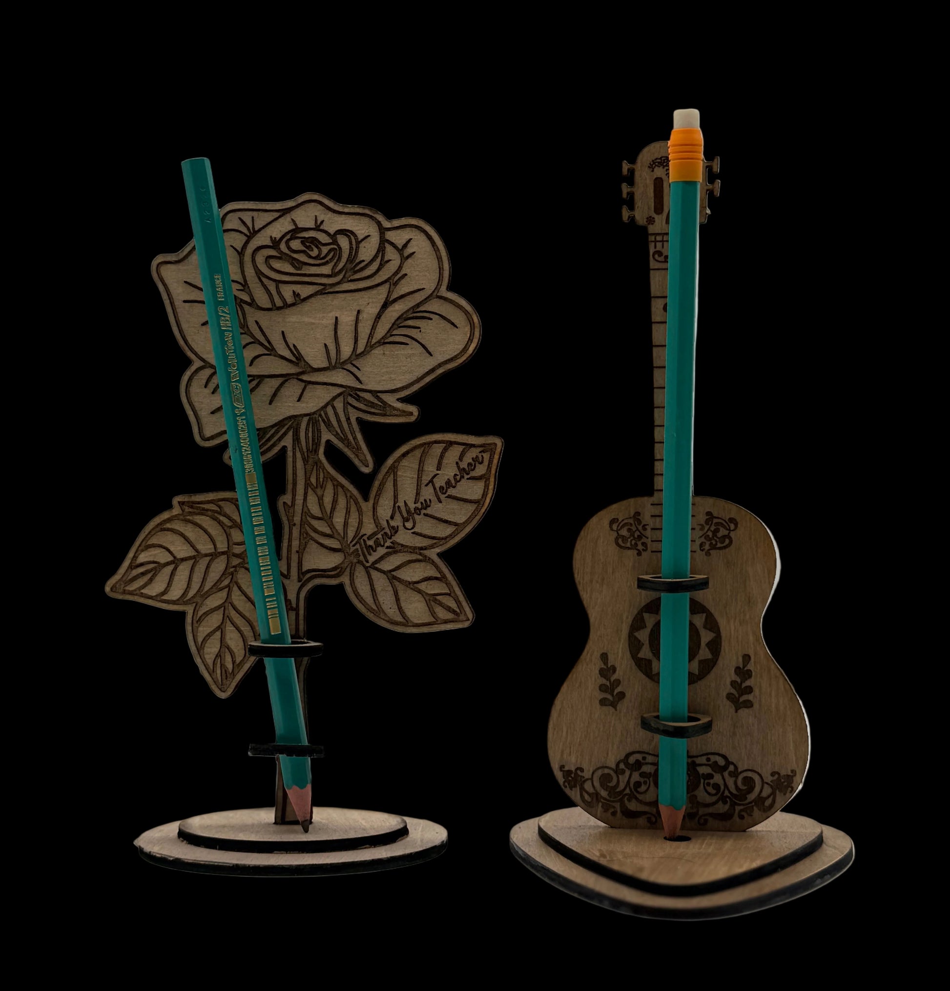 Porte-stylo en bois naturel, découpé et gravé au laser.